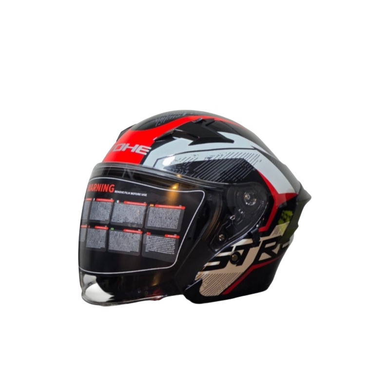 Yohe 878 Black White Red Half Face Helmet